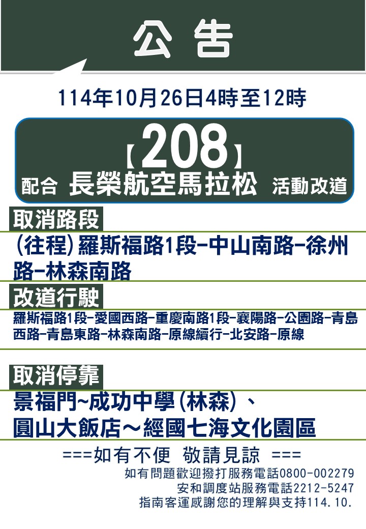 2025長榮航空馬拉松活動於10月26日配合改道